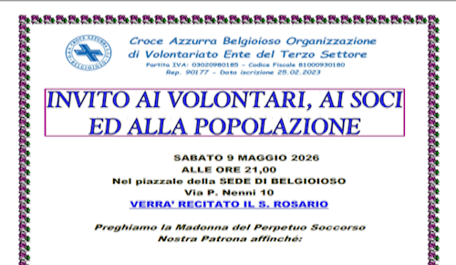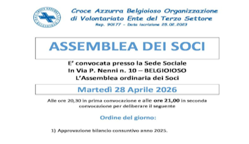 La CROCE AZZURRA BELGIOIOSO O.d.V. E.T.S. è una organizzazione di volontariato di utilità sociale presente sul territorio della Bassa Pavese.